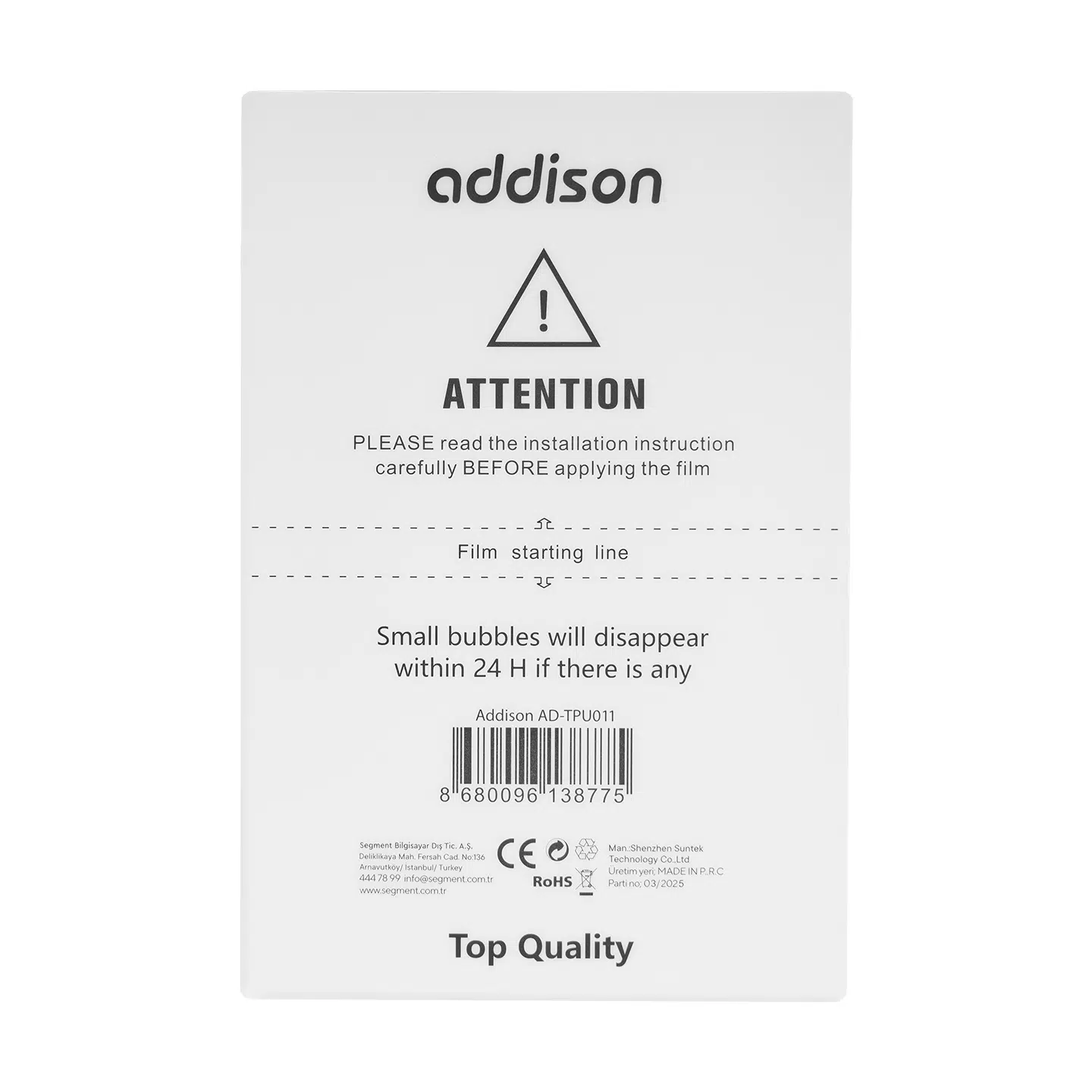 | Etiketler | Addison AD-TPU011 Nano Tüm Telefonlarla Uyumlu Ekran Koruyucu |