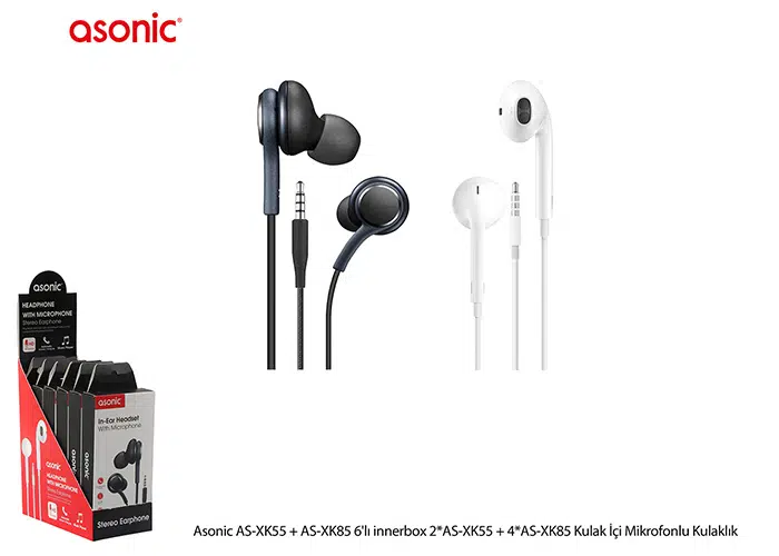 | Etiketler | Asonic AS-XK85 + AS-XK90 6'lı innerbox 4*AS-XK85 Kulak İçi Mikrofonlu Kulaklık |