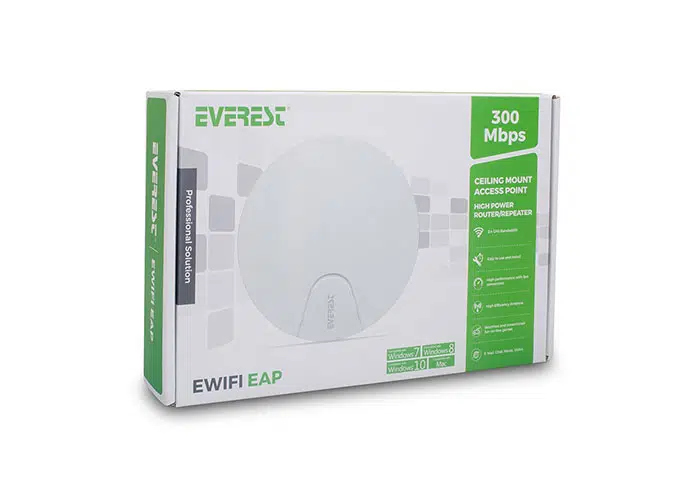 Everest EWİFİ EAP 300 Mbps 11N 2.4GhzTavan Kablosuz Router Acces Point ; 300Mbps ile hızlı aktarımın tadını çıkartın. Yeni nesil dizayn ve yapısı sayesinde her türlü ortama uyum sağlar ve göz zevkinize tam olarak hitap eder.