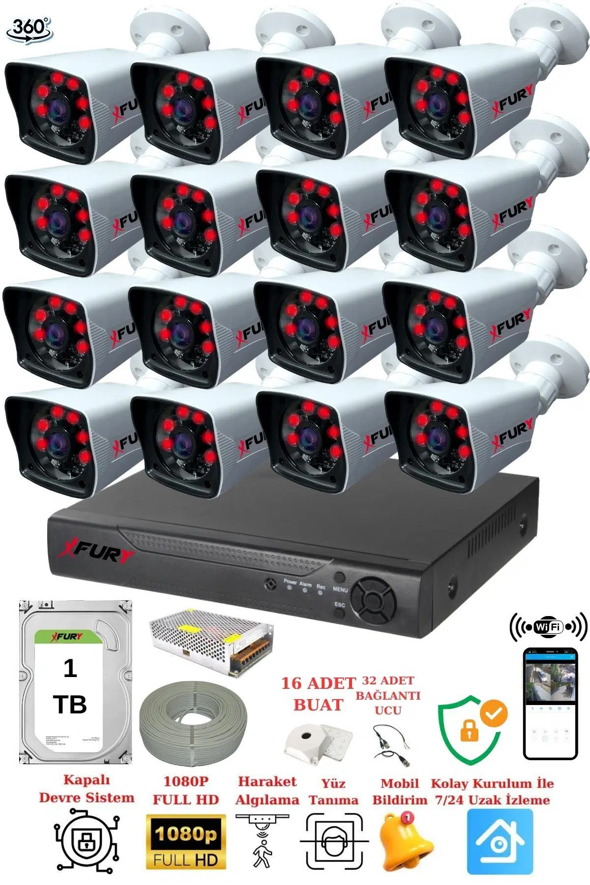 | Etiketler | FURY 16 Kameralı 5mp Lensli 1080P 2mp Görüntü 6 Atom Gece Görüşlü FullHd Güvenlik Kamerası 5525A 1 TB |