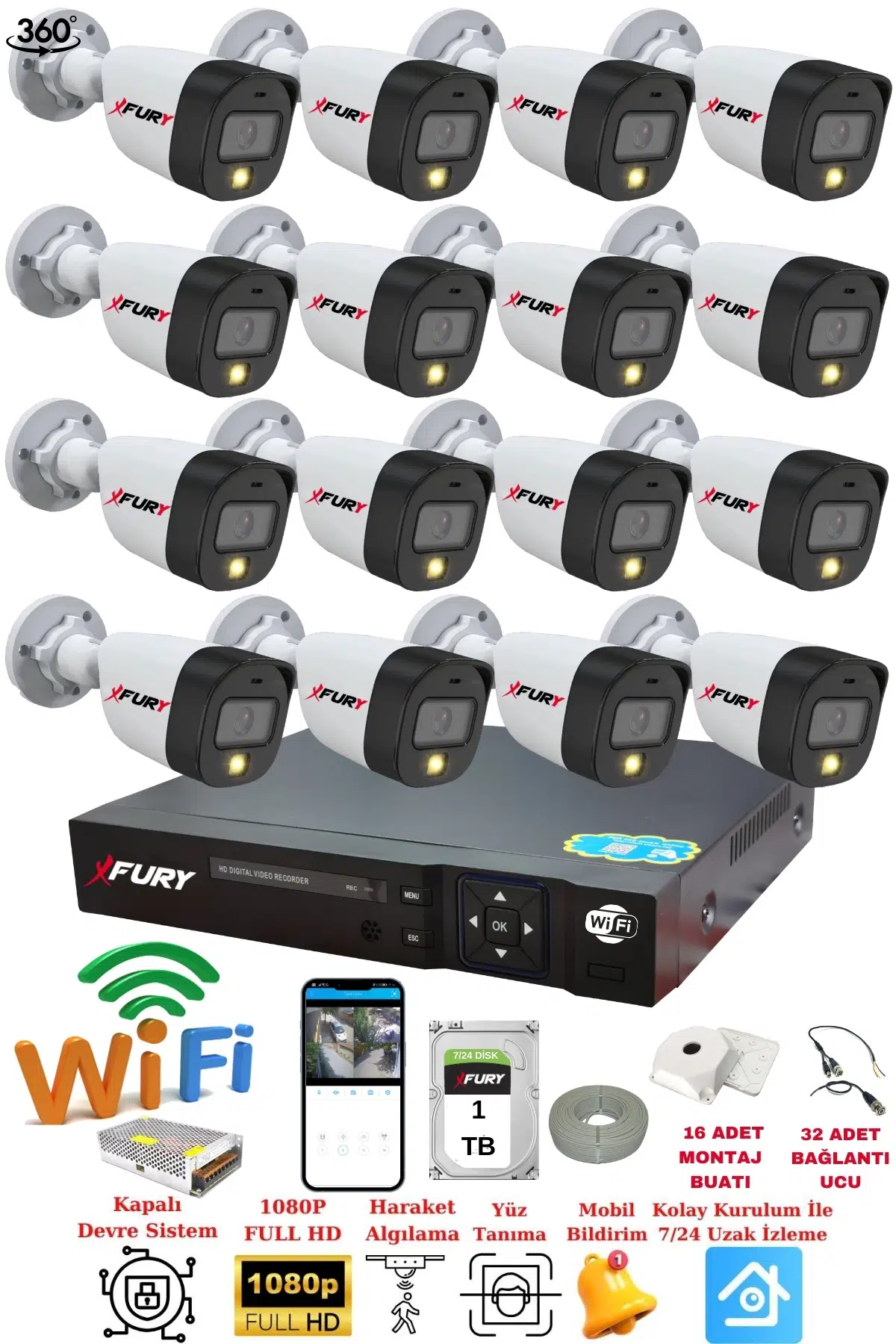 | Etiketler | FURY 16 Kameralı Gece Renkli 1080P 2Mp Görüntü Full Hd Ultra Led Gece Renkli Güvenlik Kamerası Seti 1 TB |