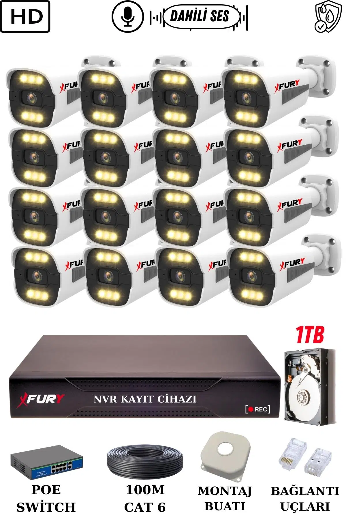 | Etiketler | FURY 16 Kameralı Ip Güvenlik Kamerası Seti Sesli 4mp Gece Renkli Su Geçirmez 1506s 1TB |