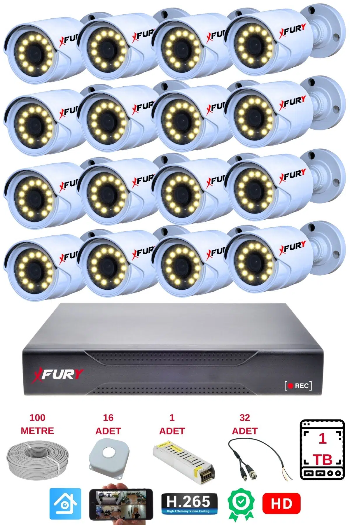 | Etiketler | FURY 16 Lı Gece Renkli Görüş Güvenlik Kamerası Full Hd-Su Geçirmez Güvenlik Kamerası Seti 1TB |