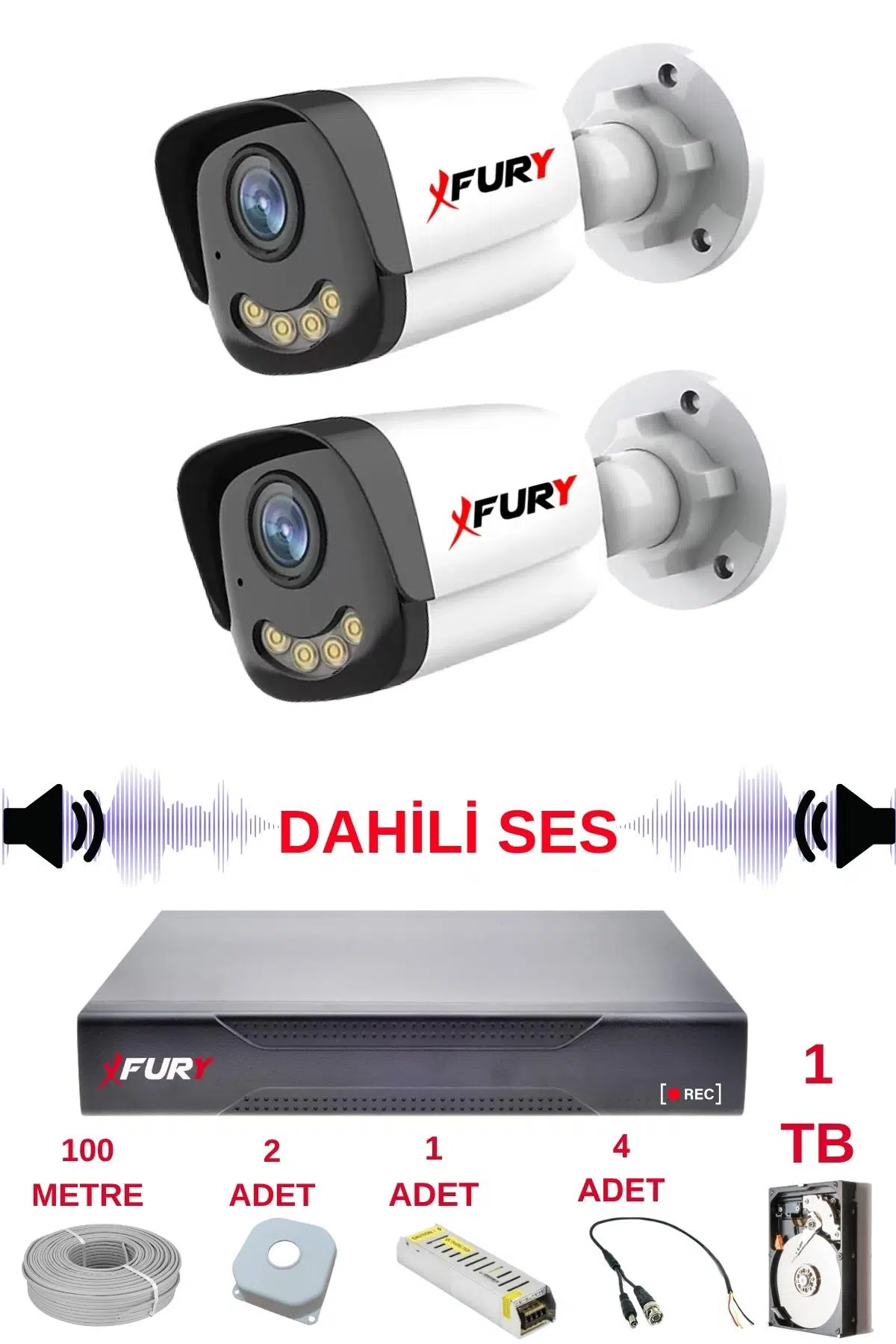 2 Adet FURY SESLİ Gece Renkli - 5mp Lens 1080p Full HD Ahd Güvenlik Kamerası Ultra Led Renkli Gece Görüş SESLİ 5590s