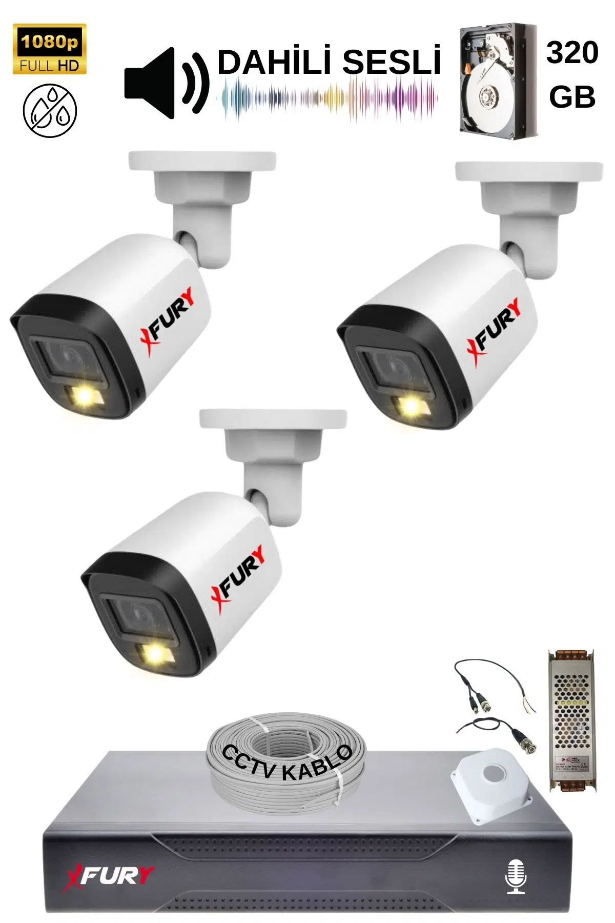 3 Adet FURY SESLİ Gece Renkli - 5mp Lens 1080p Full HD Ahd Güvenlik Kamerası Ultra Led Renkli Gece Görüş SESLİ