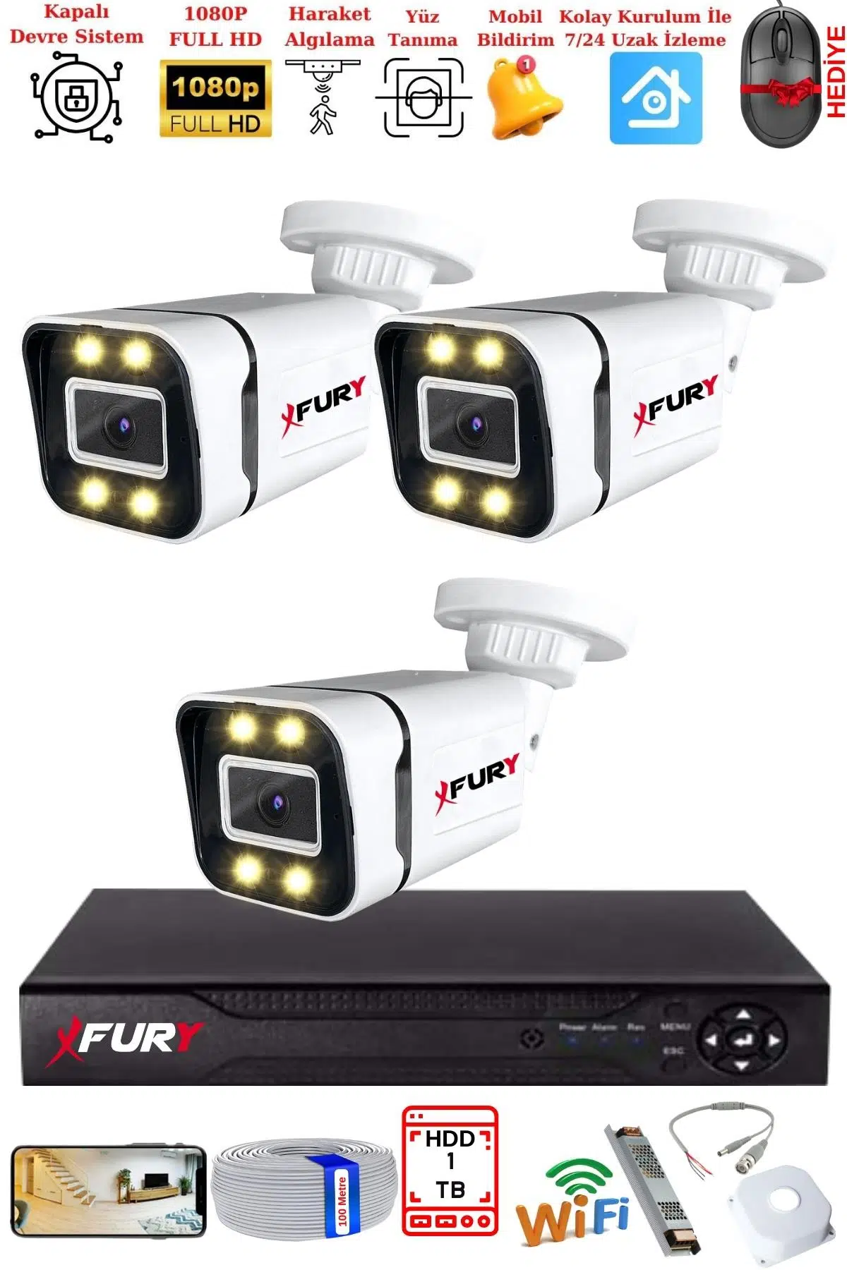 3 Adet FURY Gece Renkli - 5mp Lens 1080pFull HD Ahd Güvenlik Kamerası 4 x Ultra Led Renkli Gece Görüş 5580