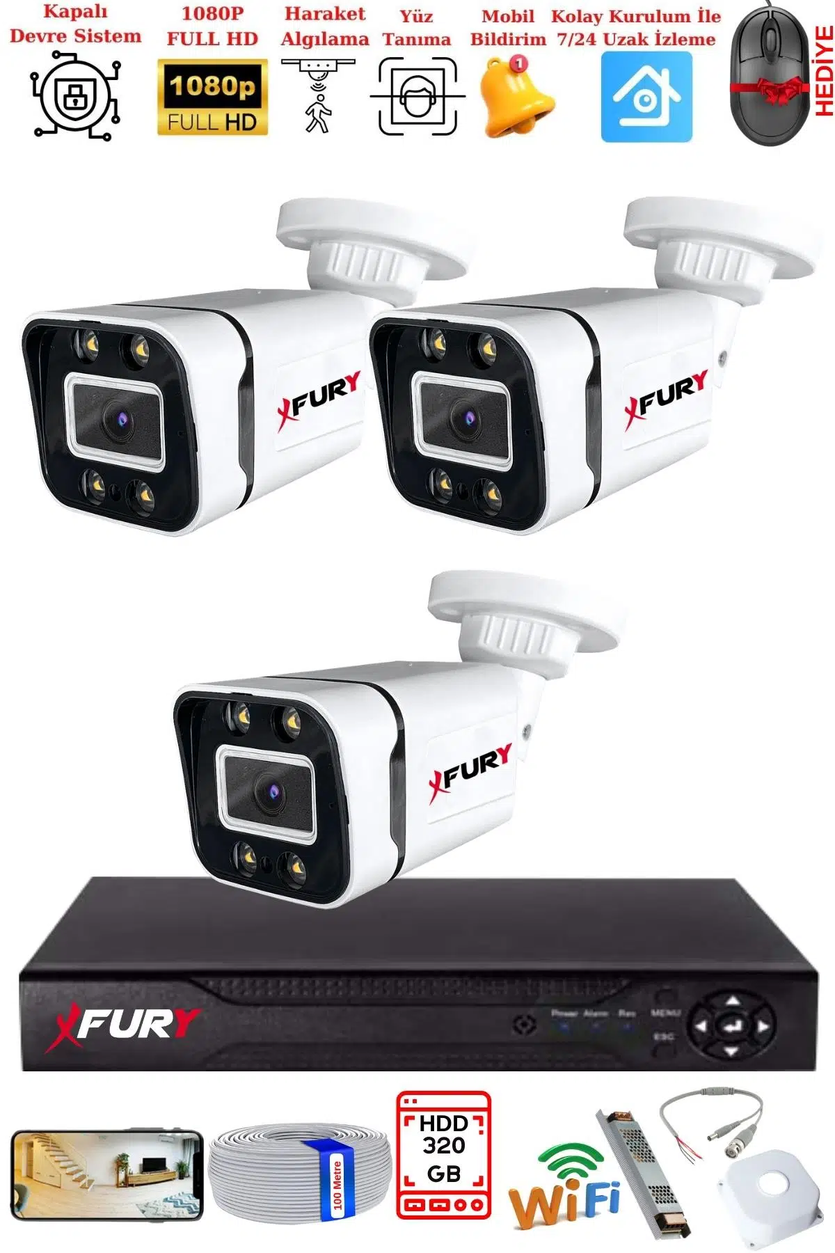 | Etiketler | FURY 3 Kameralı 1080P Görüntü Gece Renkli Full Hd 4 x Ultra Led Gece Renkli Güvenlik Kamerası Seti 320GB |