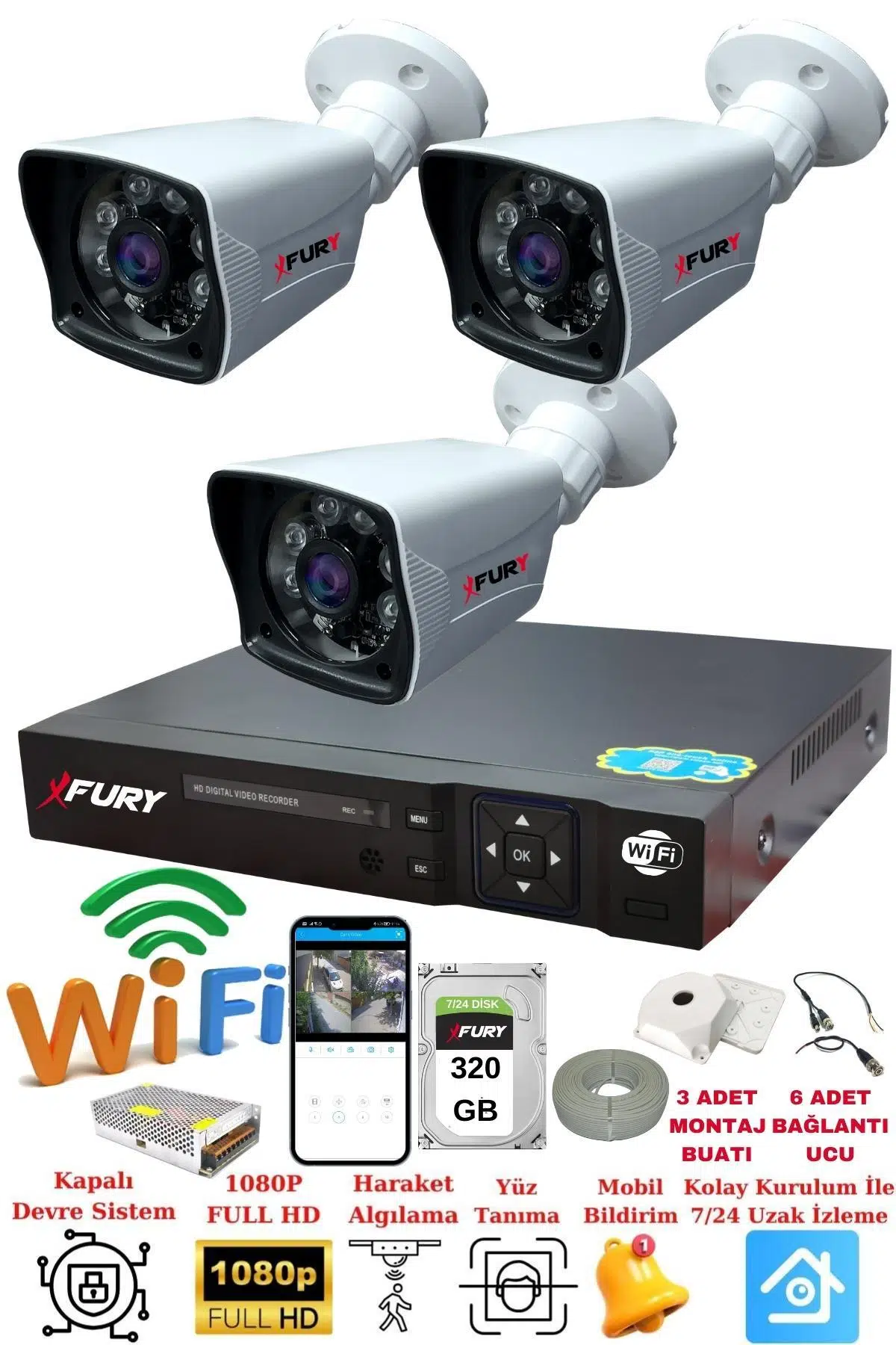 EtiketlerFURY 3 Kameralı 5mp Lensli 1080P 2mp Görüntü 6 Atom Gece Görüşlü FullHd Güvenlik Kamerası 5525A 320GB