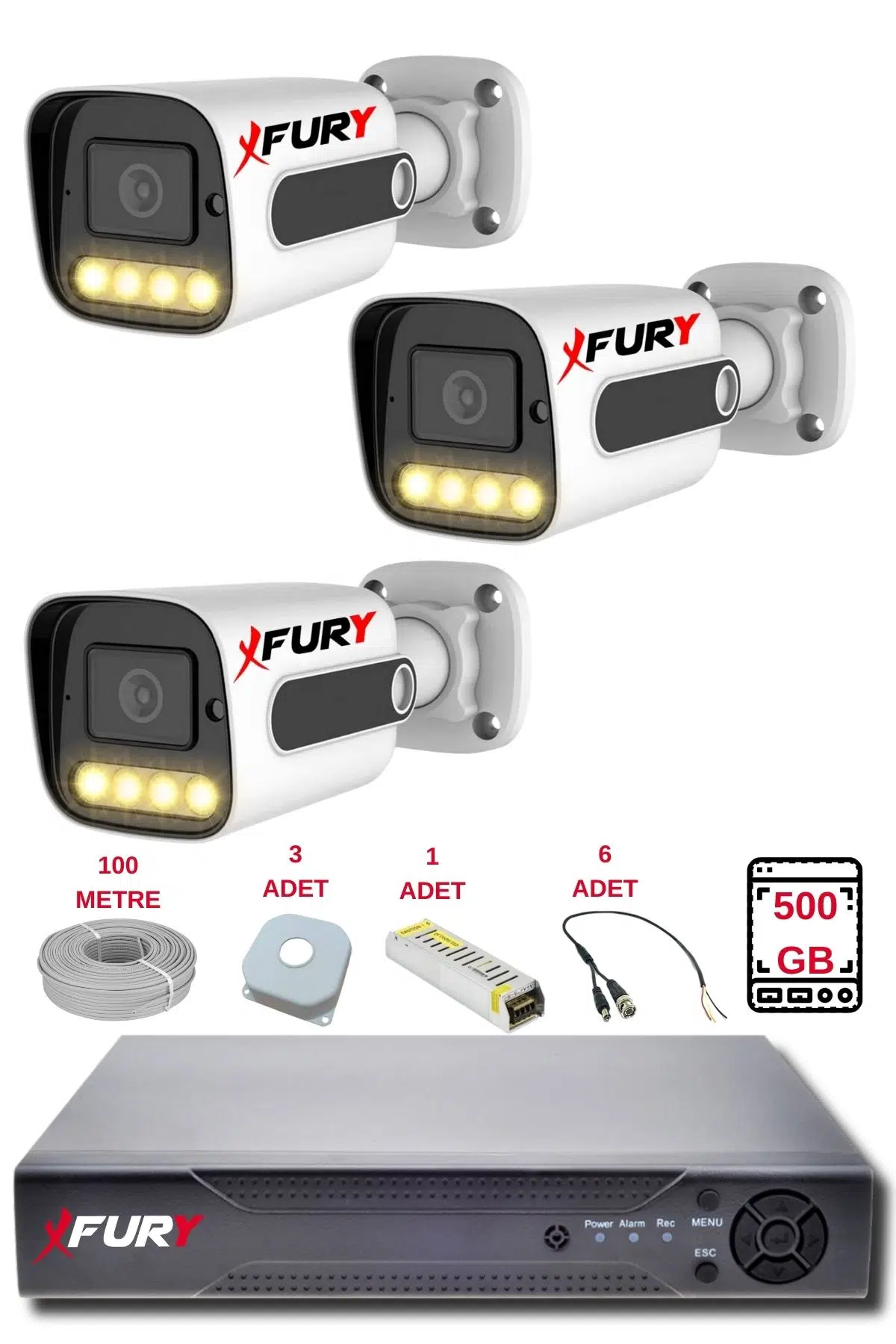 3 Adet FURY Gece Renkli - Full HD Ahd Güvenlik Kamerası Renkli Gece Görüş 5500
