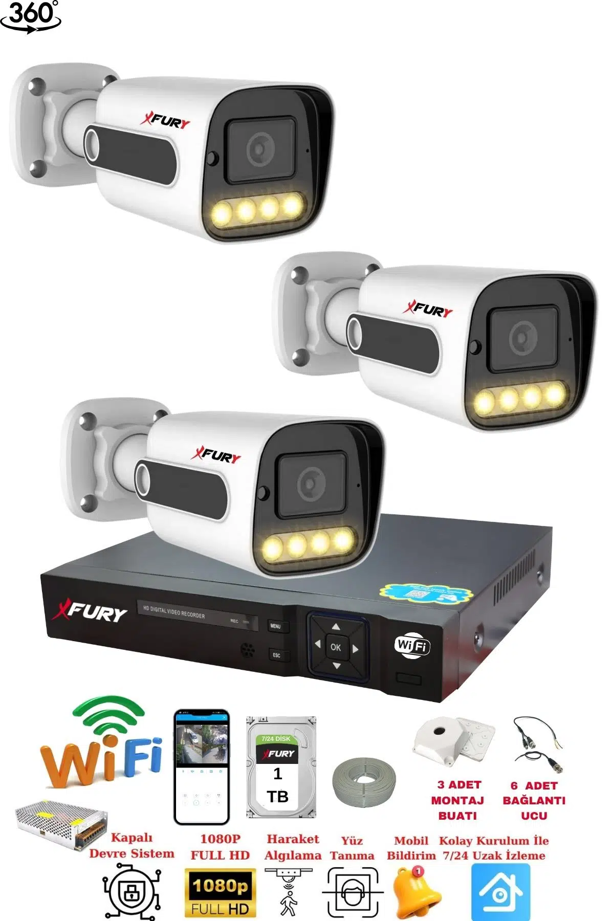 ·3 Adet FURY1080P Görüntü Gece Renkli FullHd 4xUltra Led Gece Renkli Güvenlik Kamera 5500