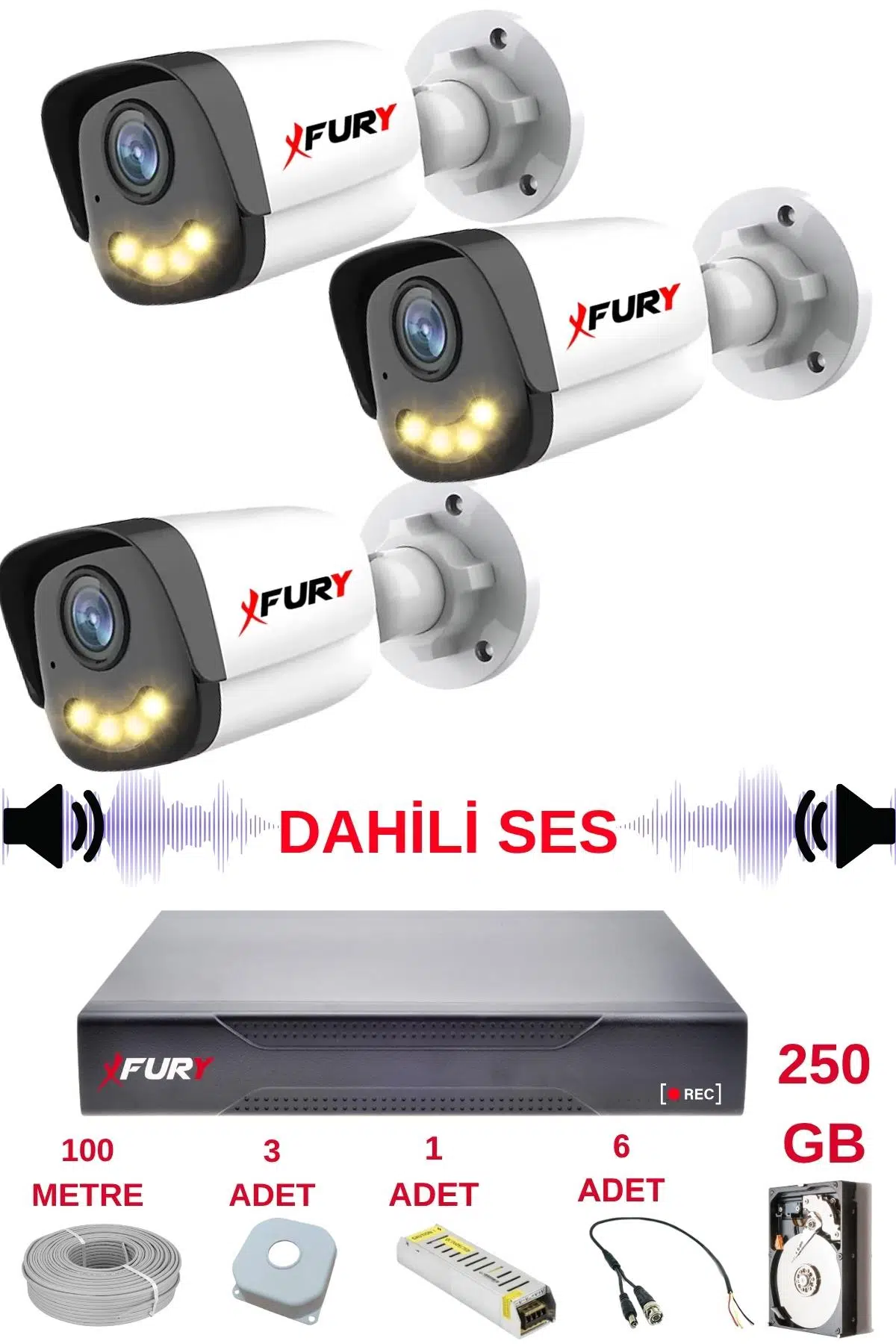 3 Adet FURY SESLİ Gece Renkli - 5mp Lens 1080p Full HD Ahd Güvenlik Kamerası Ultra Led Renkli Gece Görüş SESLİ 5590s