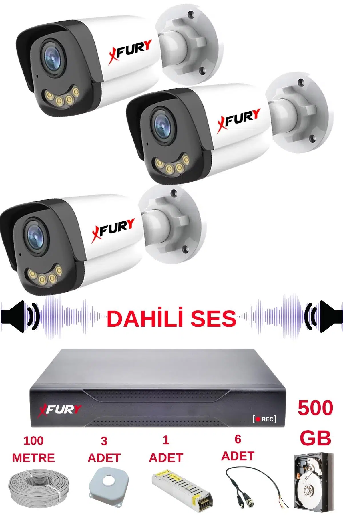 3 Adet FURY SESLİ Gece Renkli - 5mp Lens 1080p Full HD Ahd Güvenlik Kamerası Ultra Led Renkli Gece Görüş SESLİ 5590s