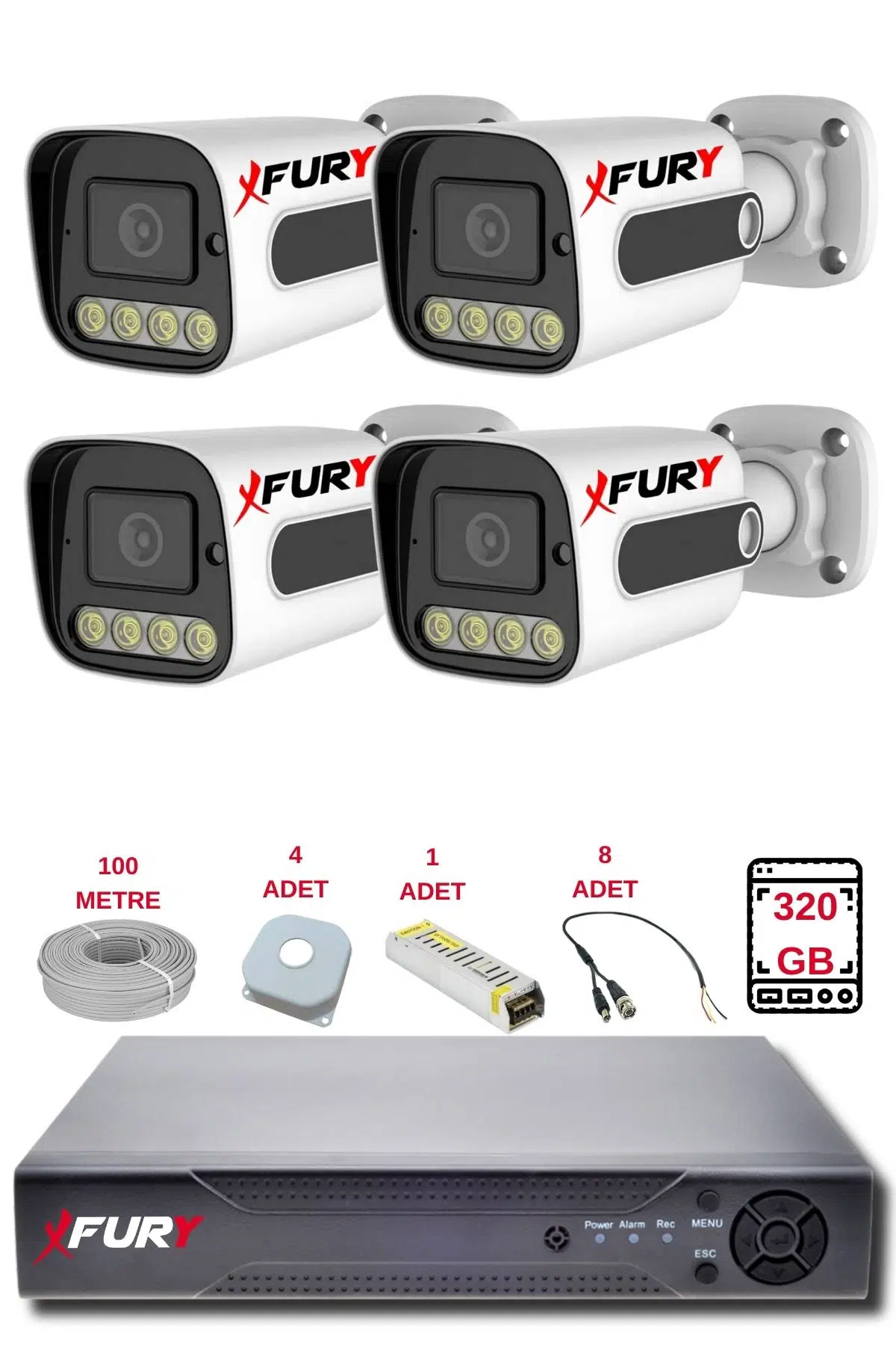 4 Adet FURY Gece Renkli - Full HD Ahd Güvenlik Kamerası Renkli Gece Görüş 5500