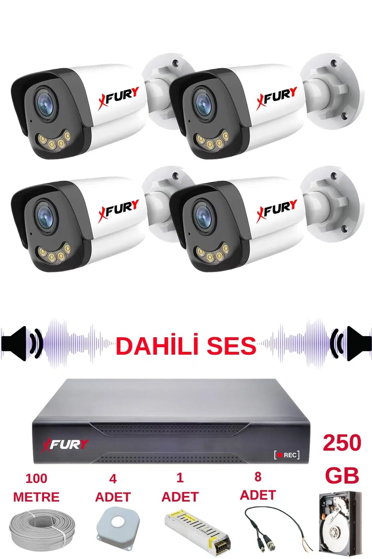 4 Adet FURY SESLİ Gece Renkli - 5mp Lens 1080p Full HD Ahd Güvenlik Kamerası Ultra Led Renkli Gece Görüş SESLİ 5590s