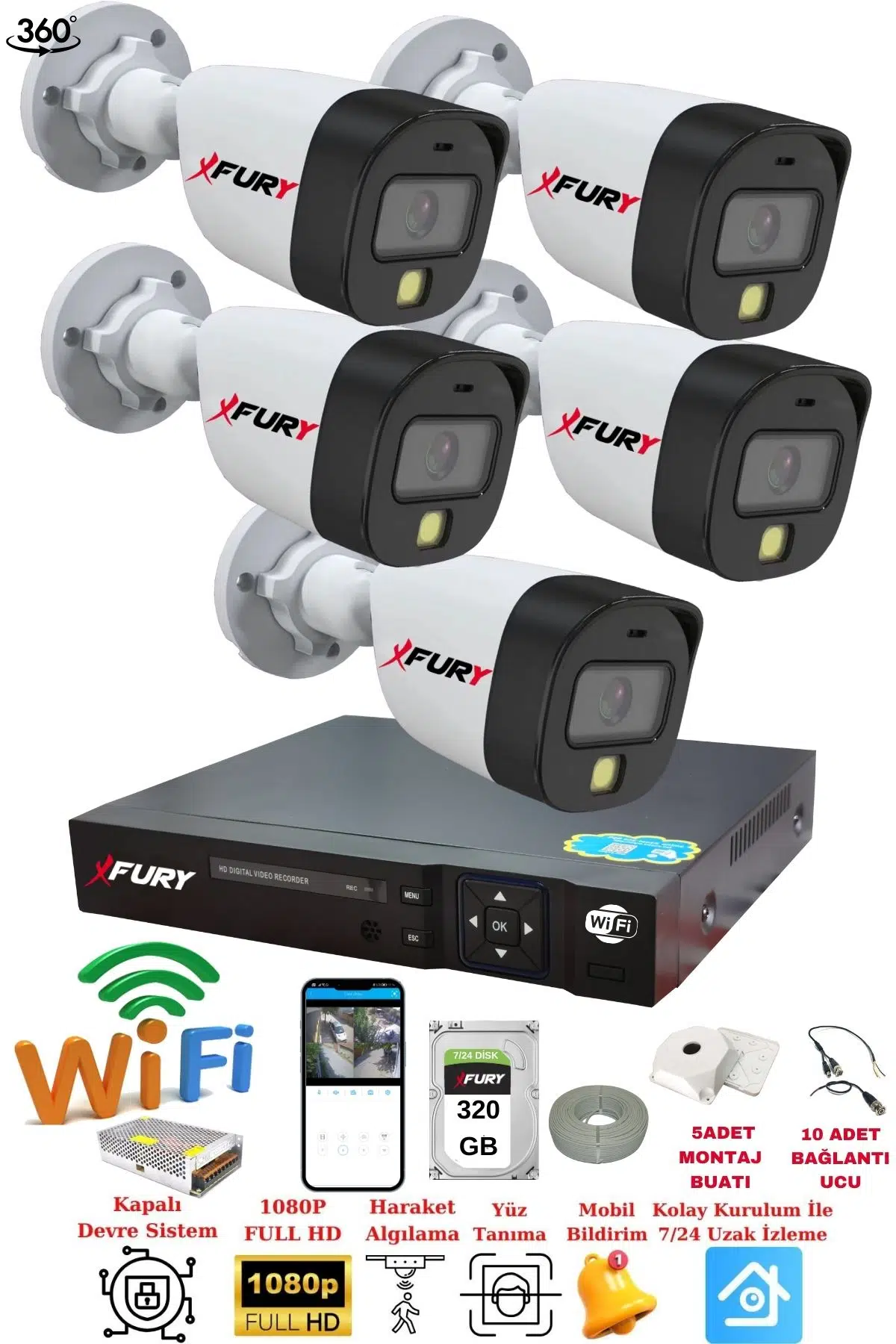 FURY 5 Kameralı Gece Renkli 1080P 2Mp Görüntü Full Hd Ultra Led Gece Renkli Güvenlik Kamerası Seti 320GB