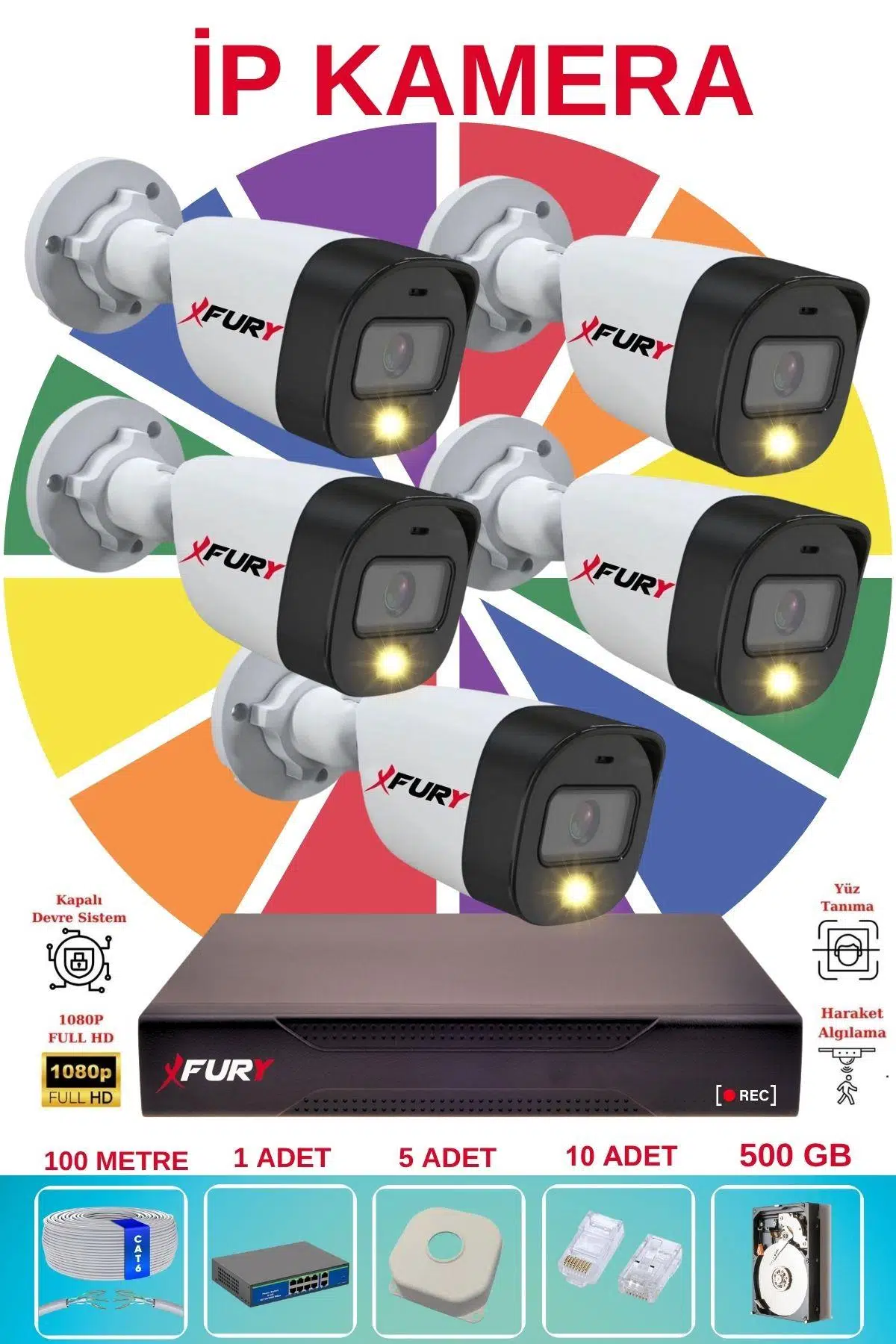 FURY 3 Lü Ip Güvenlik Kamera Seti Sesli 4mp Gece Renkli Su Geçirmez 5515s 500GB