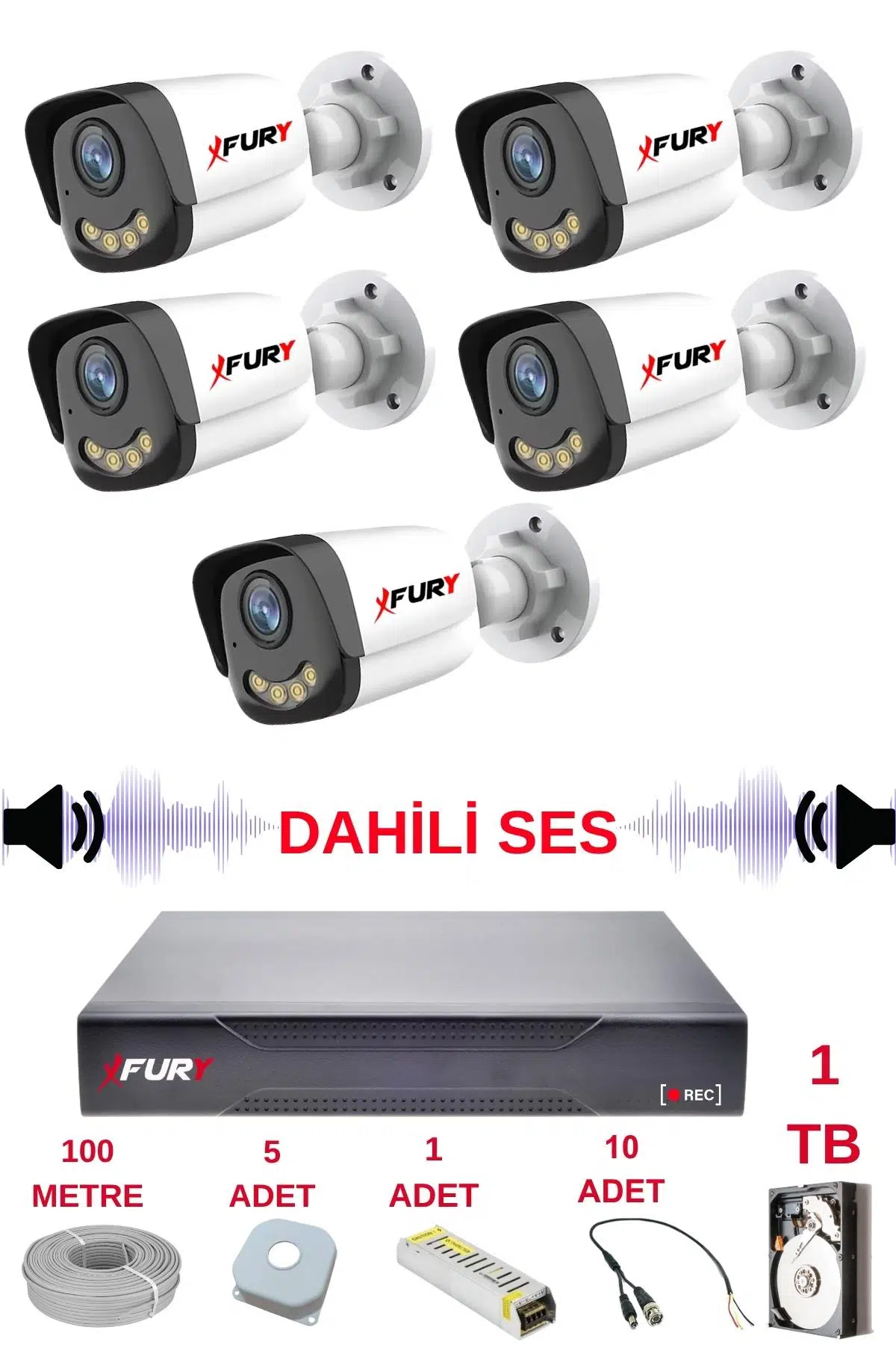 5 Adet FURY SESLİ Gece Renkli - 5mp Lens 1080p Full HD Ahd Güvenlik Kamerası Ultra Led Renkli Gece Görüş SESLİ 5590s