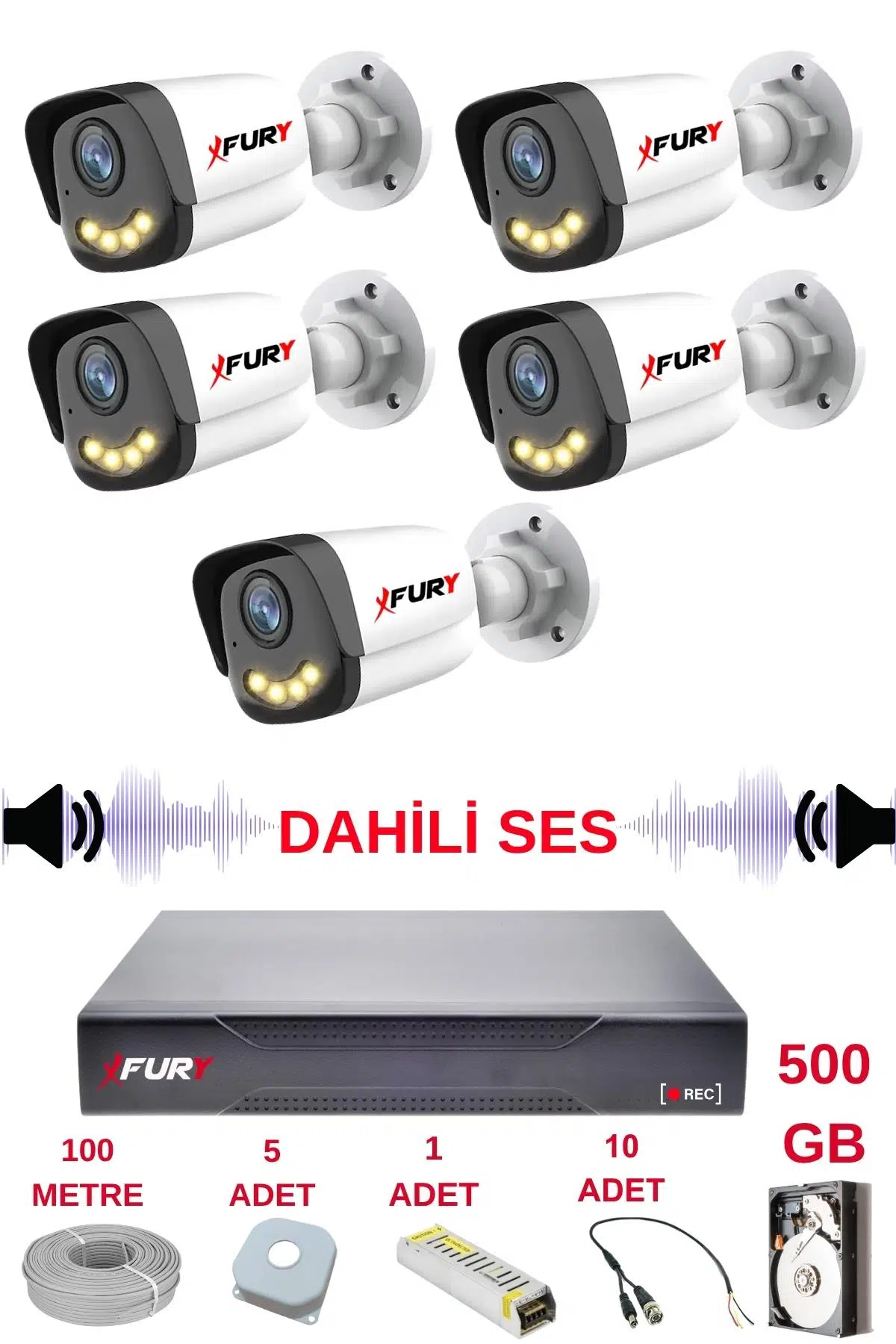 5 Adet FURY SESLİ Gece Renkli - 5mp Lens 1080p Full HD Ahd Güvenlik Kamerası Ultra Led Renkli Gece Görüş SESLİ 5590s