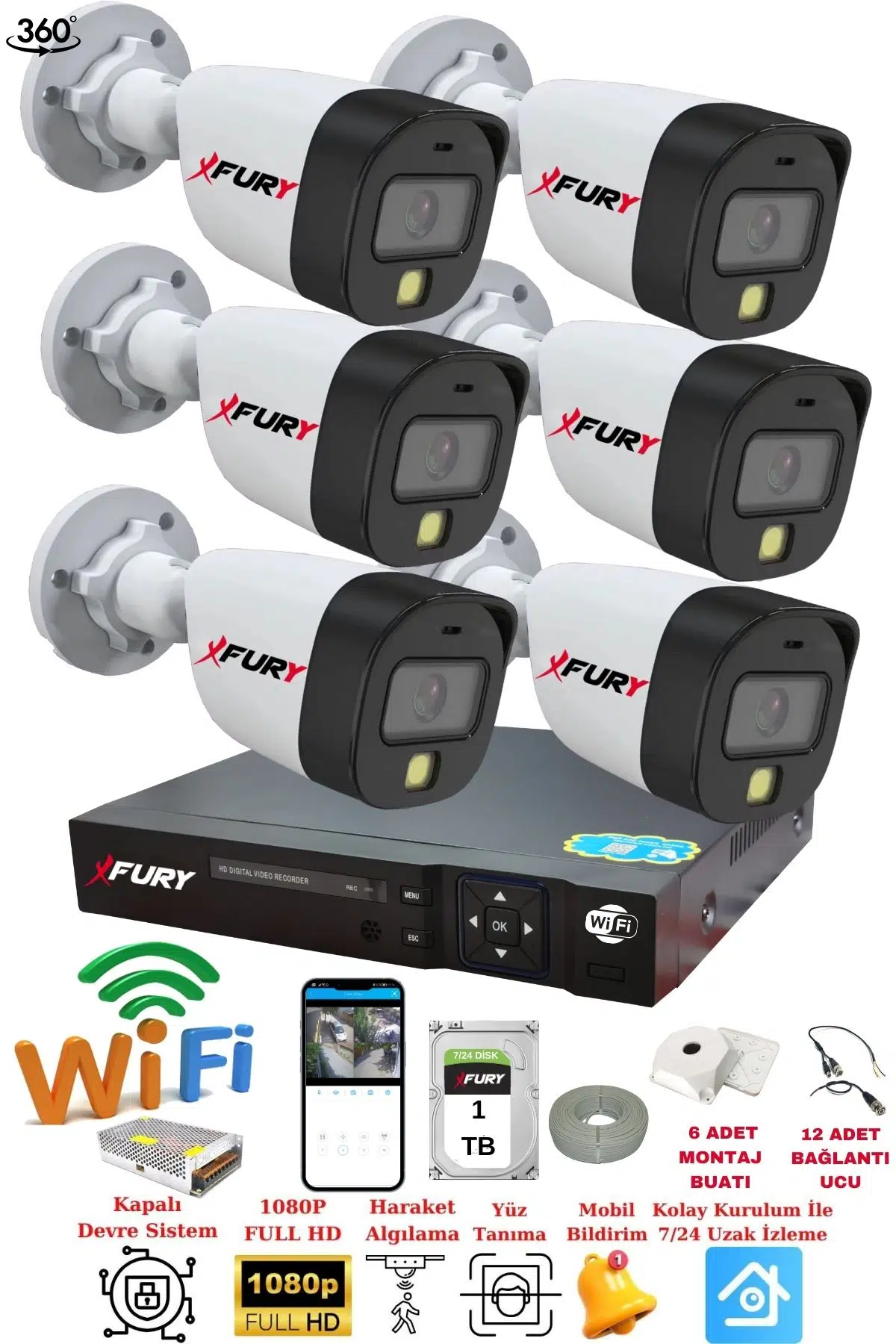 | Etiketler | FURY 6 Kameralı Gece Renkli 1080P 2Mp Görüntü Full Hd Ultra Led Gece Renkli Güvenlik Kamerası Seti 1 TB |