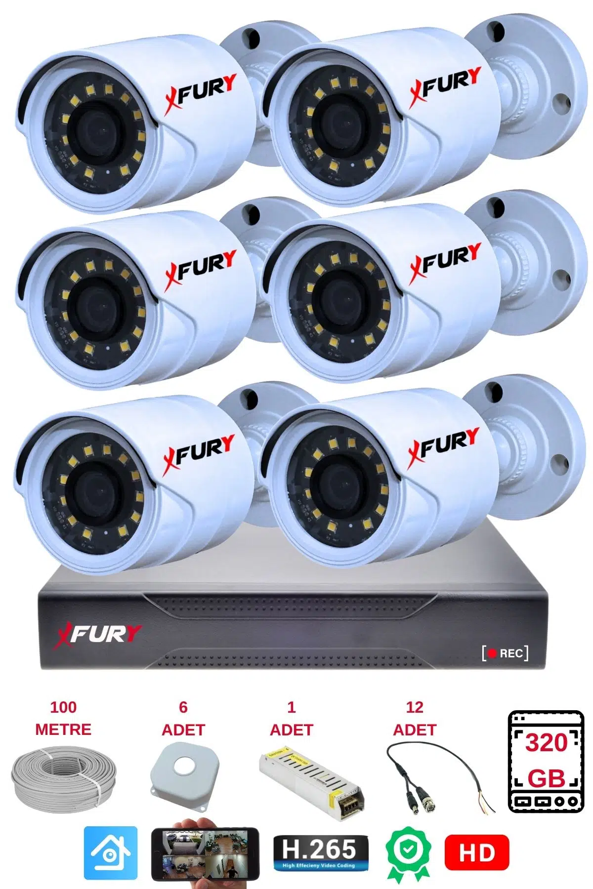 FURY 6 lı Gece Renkli Görüş Güvenlik Kamerası Full HD-Su Geçirmez Güvenlik Kamerası Seti 320GB