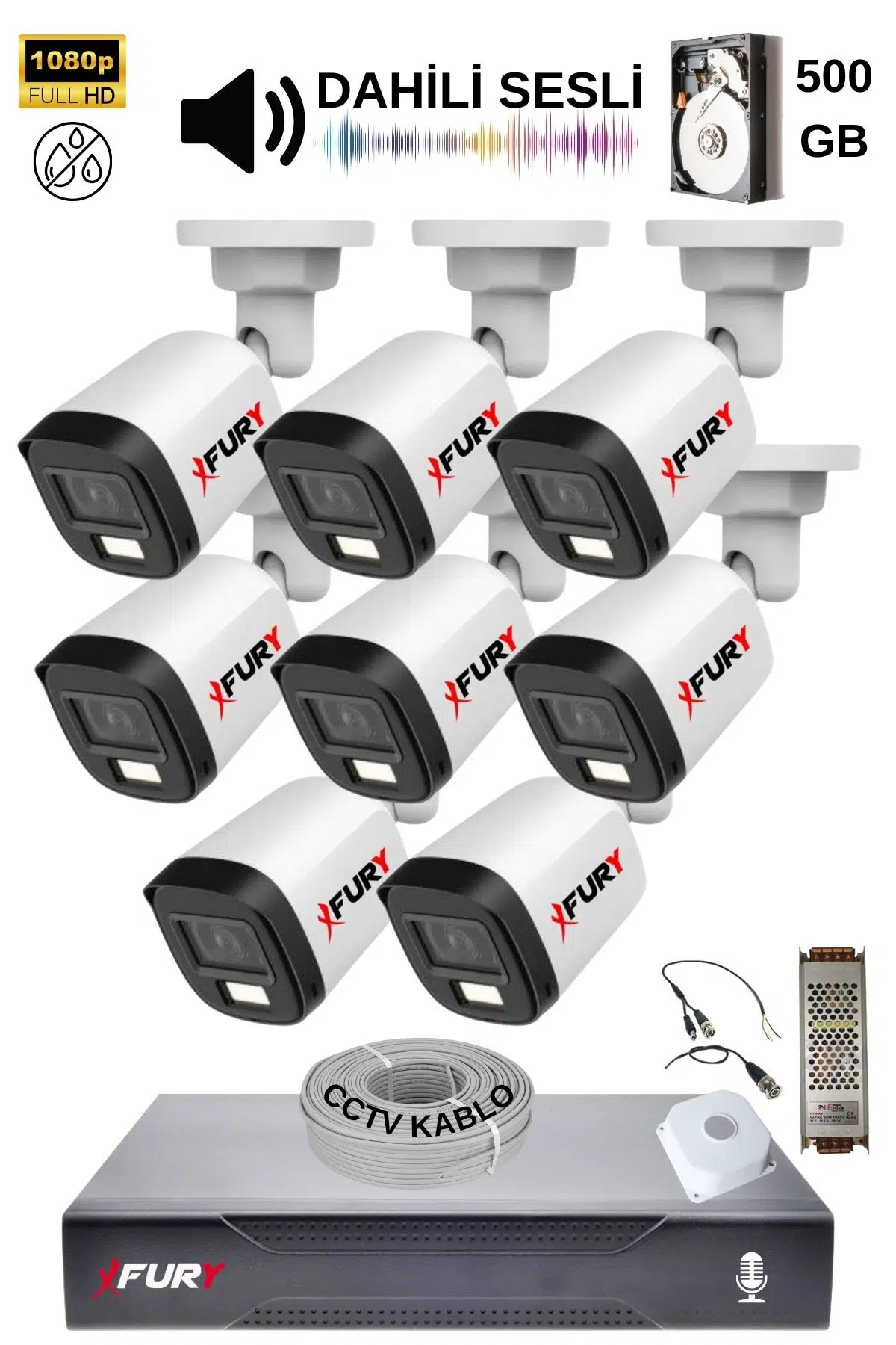 8 Adet FURY SESLİ Gece Renkli - 5mp Lens 1080p Full HD Ahd Güvenlik Kamerası Ultra Led Renkli Gece Görüş SESLİ