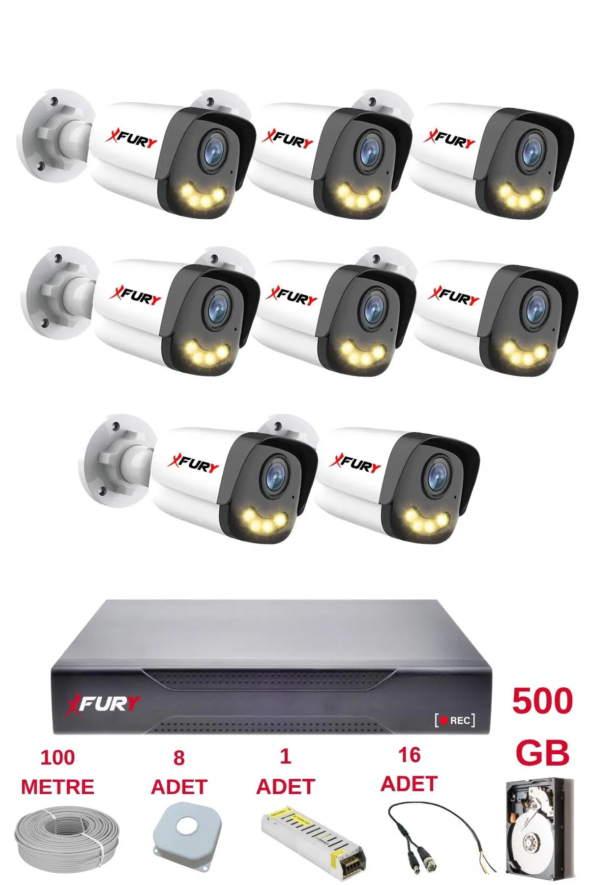 8 Adet FURY Gece Renkli - Full HD Ahd Güvenlik Kamerası Renkli Gece Görüş 5590
