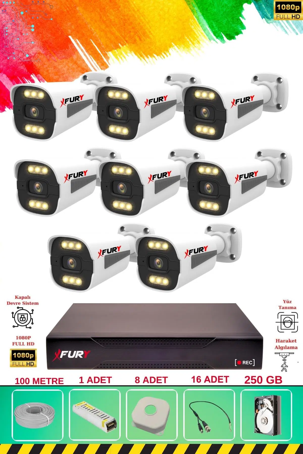 8 Adet FURY Gece Renkli - Full HD Ahd Güvenlik Kamerası Renkli Gece Görüş 1506