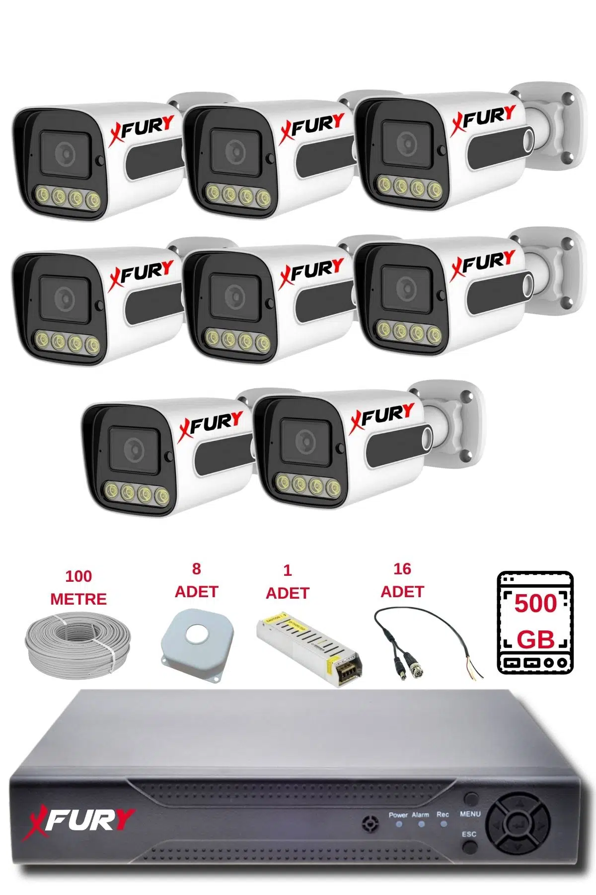 8 Adet FURY Gece Renkli - Full HD Ahd Güvenlik Kamerası Renkli Gece Görüş 5500
