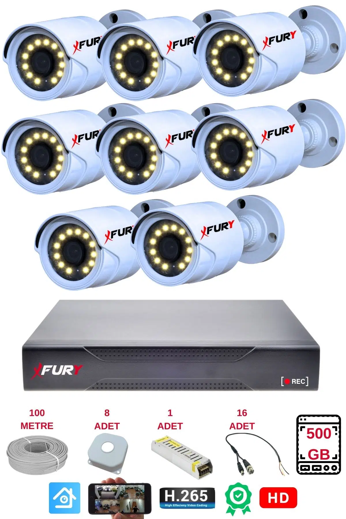 FURY 3 LÜ Sesli Gece Renkli Görüş Güvenlik Kamerası Su Geçirmez Güvenlik Kamerası Seti 250GB