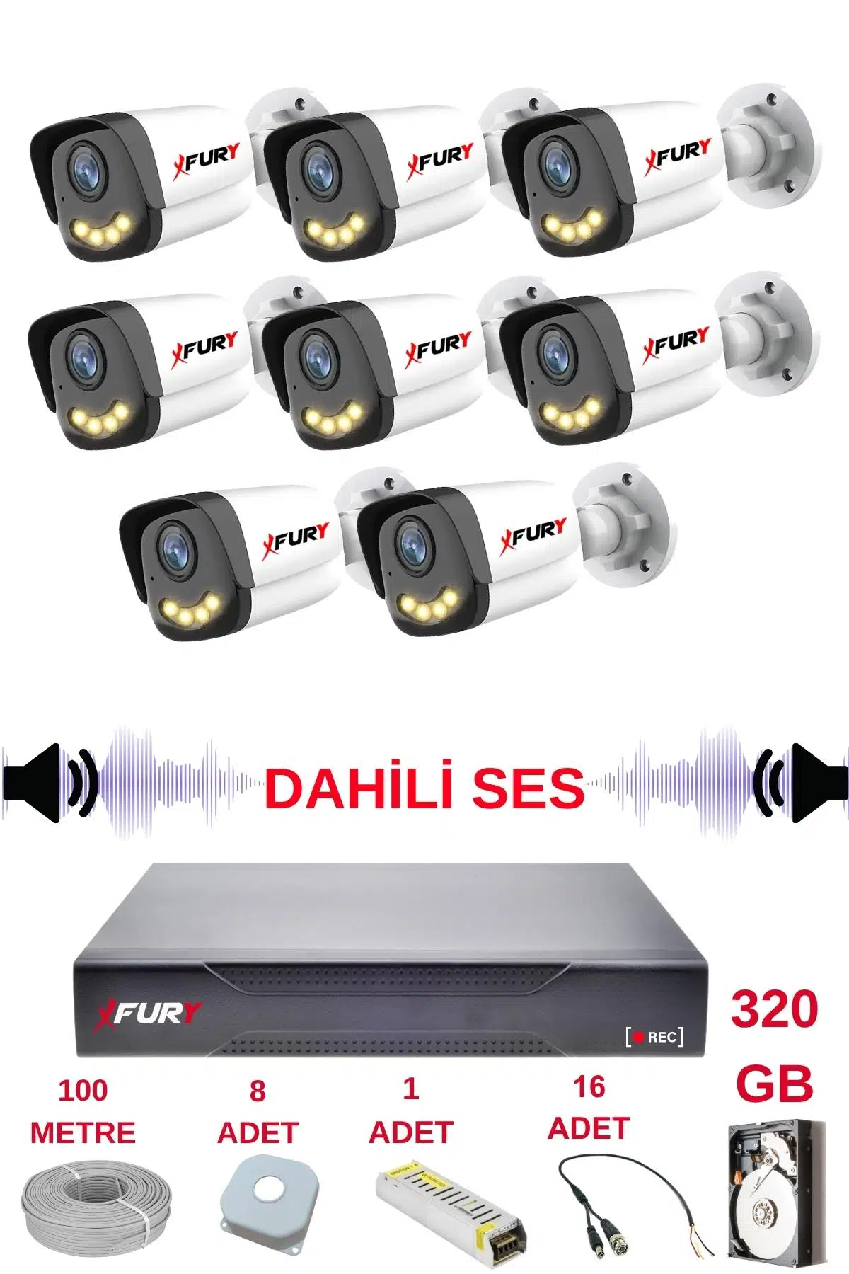 8 Adet FURY SESLİ Gece Renkli - 5mp Lens 1080p Full HD Ahd Güvenlik Kamerası Ultra Led Renkli Gece Görüş SESLİ 5590s