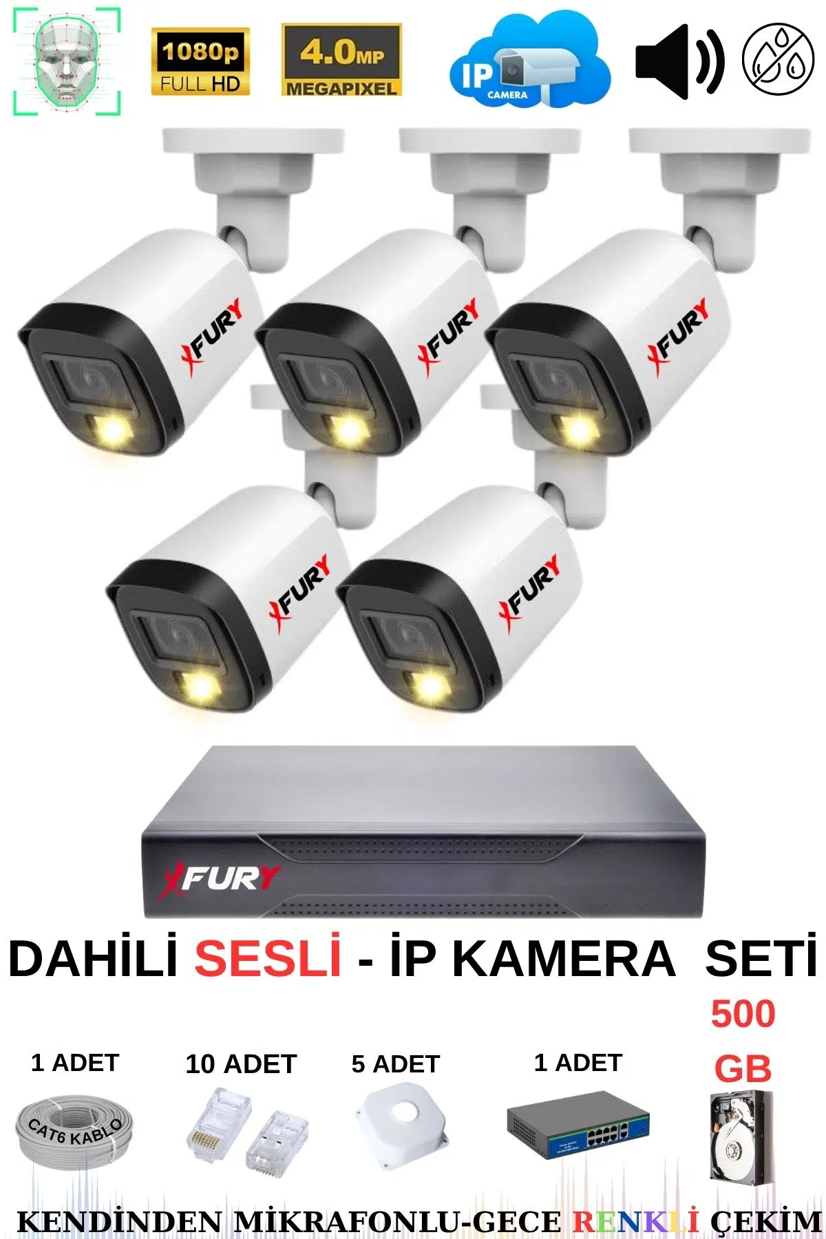 FURY Ip Güvenlik Kamera Seti 4 Kameralı Sesli 4mp Gece Renkli Su Geçirmez Ip5515s 250gb