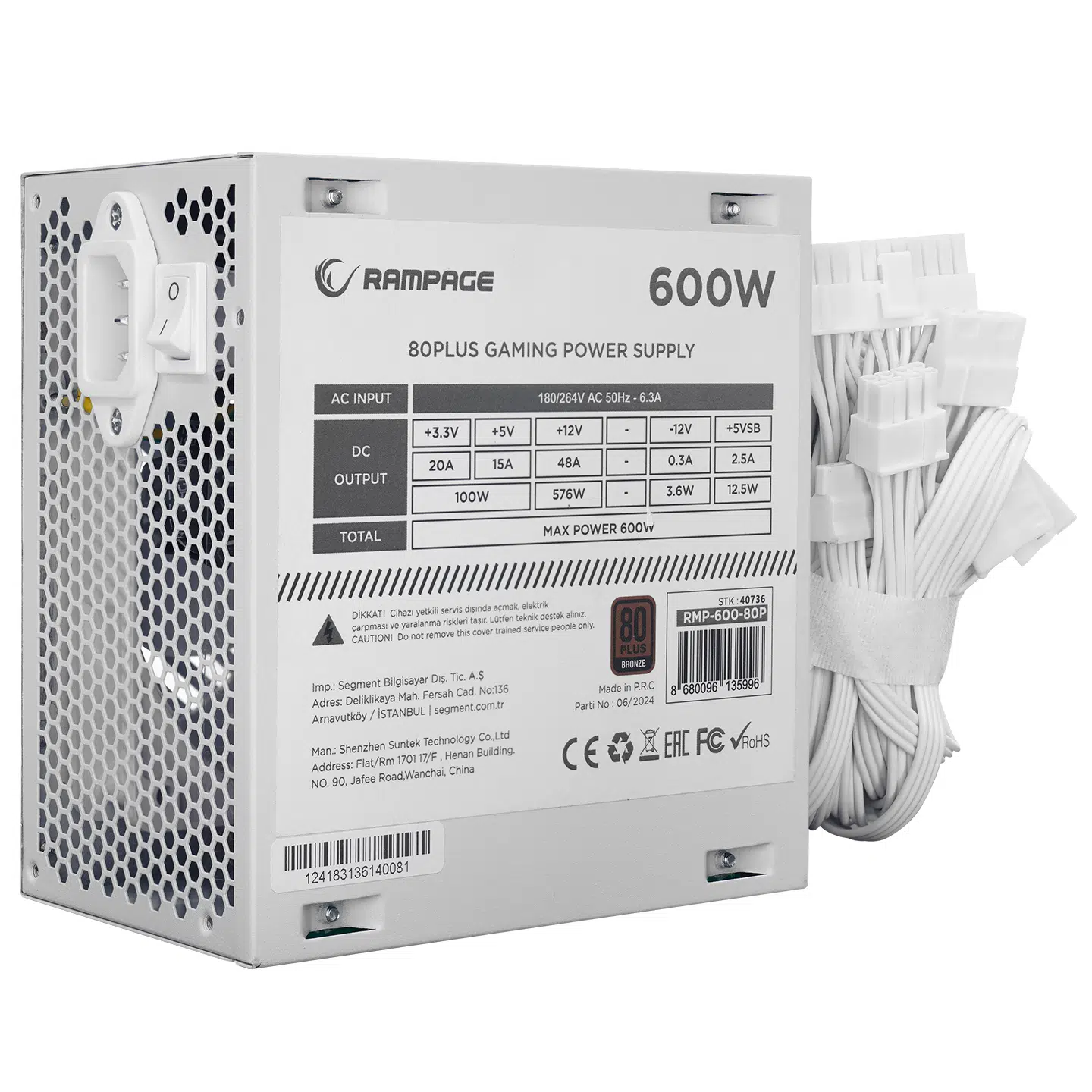 | Etiketler | Rampage RMP-600-80P 600W 80Plus Bronze 12cm Fan Aktif PFC Beyaz Power Supply |