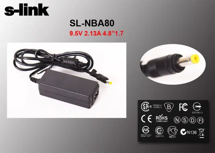 | Etiketler | S-link SL-NBA80 22W 9.5V 2.315A 4.8*1.7 Asus Netbook Standart Adaptör |