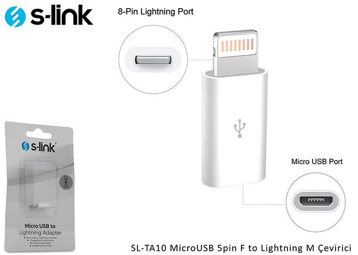 | Etiketler | S-link SL-TA10 MicroUSB 5pin F to Lightning M Çevirici |