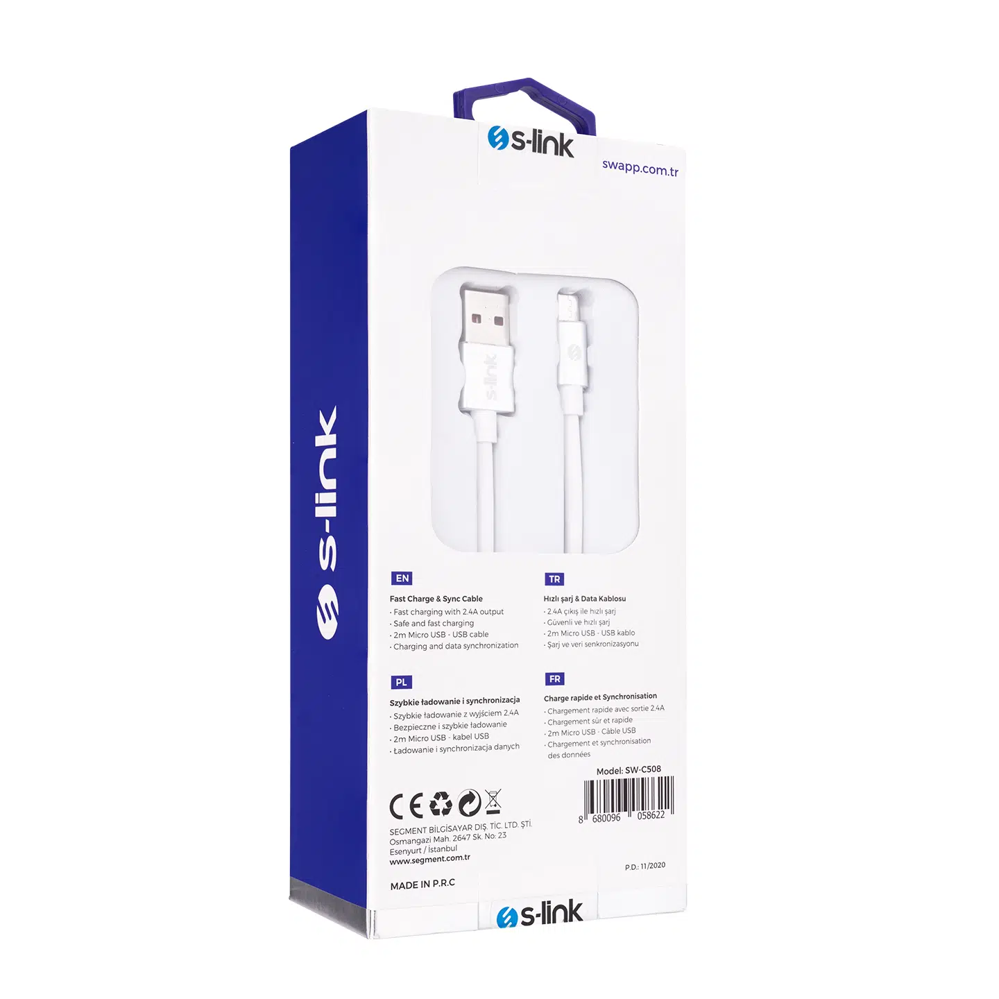 | Etiketler | S-link SW-C508 2m 2.4A Usb to Micro Usb Beyaz Data + Sarj Kablosu |