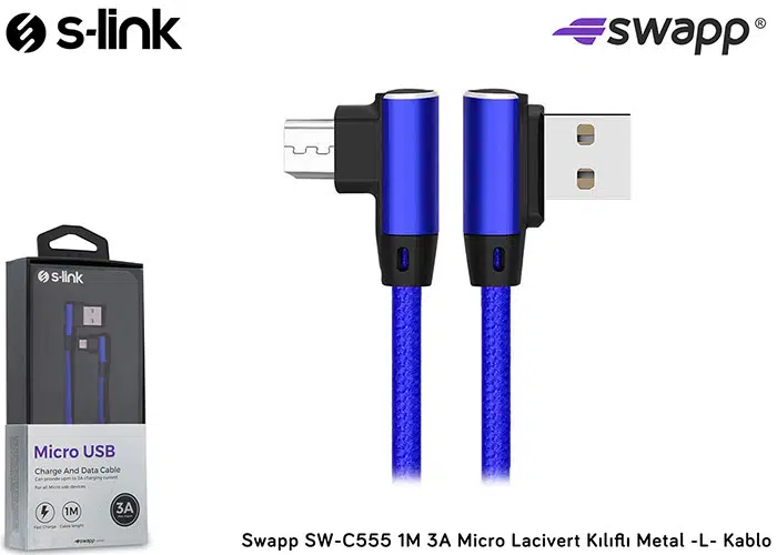 | Etiketler | S-link SW-C555 1M 3A Micro Lacivert Kılıflı Metal -L- Kablo |