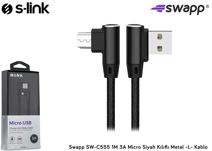 | Etiketler | S-link SW-C555 1M 3A Micro Siyah Kılıflı Metal -L- Kablo |