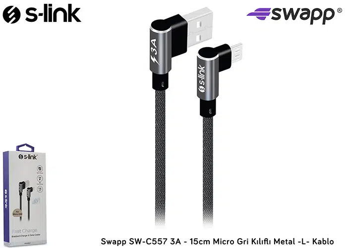 | Etiketler | S-link SW-C557 3A - 15cm Micro Gri Kılıflı Metal -L- Kablo |