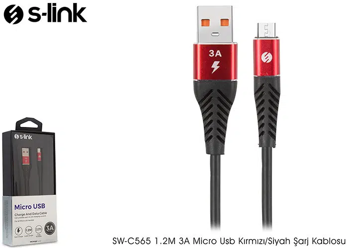 | Etiketler | S-link SW-C565 1.2M 3A Micro Usb Kırmızı/Siyah Şarj Kablosu |