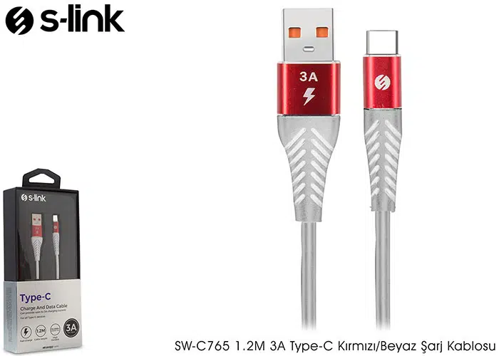 | Etiketler | S-link SW-C765 1.2M 3A Type-C Kırmızı/Beyaz Şarj Kablosu |