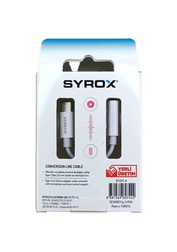 EtiketlerSyrox DT22T-A Konuşma Müzik Type-c To Aux Kulaklık Dönüştürücü