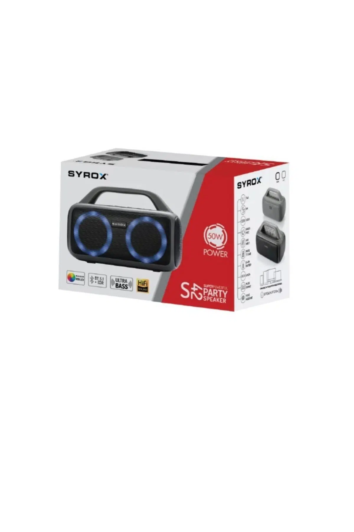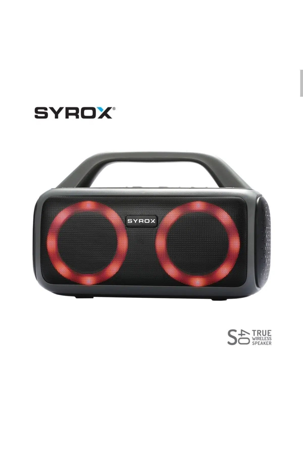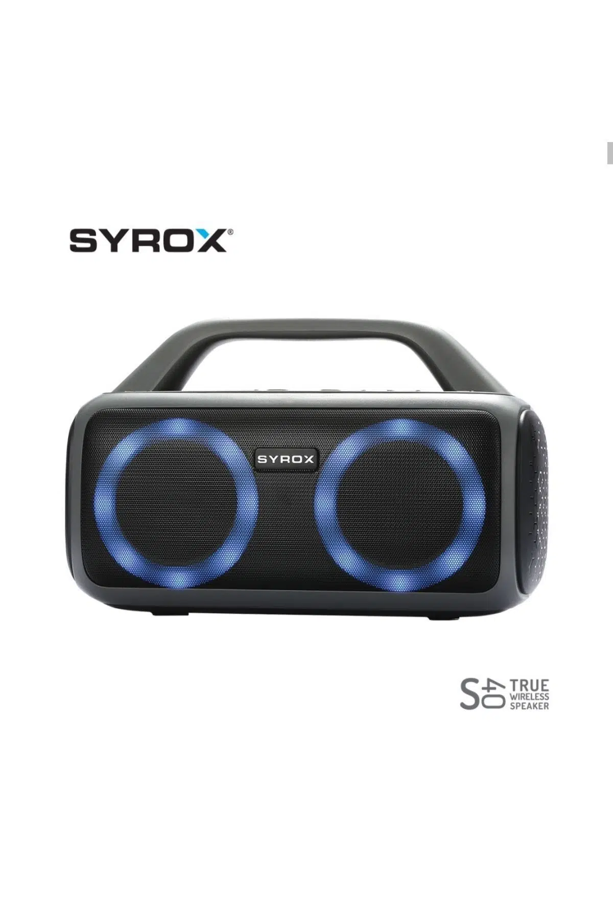 Syrox S42 Ses Bombası Teknik Özellikleri Sinyal Gürültü Oranı :>80dB Hoparlör Ünitesi :Ø78mm, 4? 25W*2 Çalma Süresi : 4-6 Saat Şarj Süresi : 6-8 Saat Çalma Mesafesi : 10M İşlevler : TWS, Kablosuz Desteği, Hat Girişi, TF Kartı, USB, FM Radyo, Eller Serbest Malzemeler : ABS Boyut : 279*132*178mm Ağırlık : 1.75kg